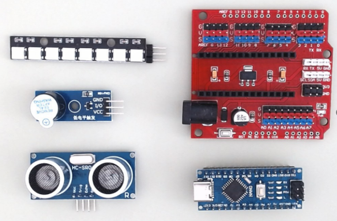 - 认识超声波测距传感器、RGB 灯带、蜂鸣器等常用电子元件,理解硬件工作原理与搭配逻辑;